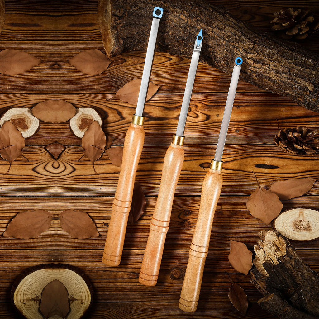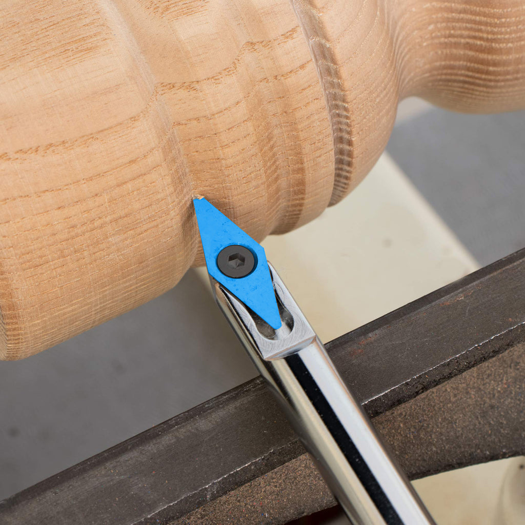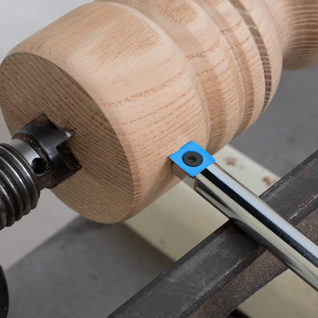 Use these cutters with the easy-to-use wood turning on your lathe with Carbide Turning tools. With the Carbide Turning Tool Set you can eliminate the inconvenience of sharpening your turning tools and hold the tool in position to cut clean and smoothly. Tips: When using carbide tipped cutters such as these, you keep the cutter straight in on the turning which produces a shearing action. This produces much cleaner cuts and tends to be easier than using standard turning tools.